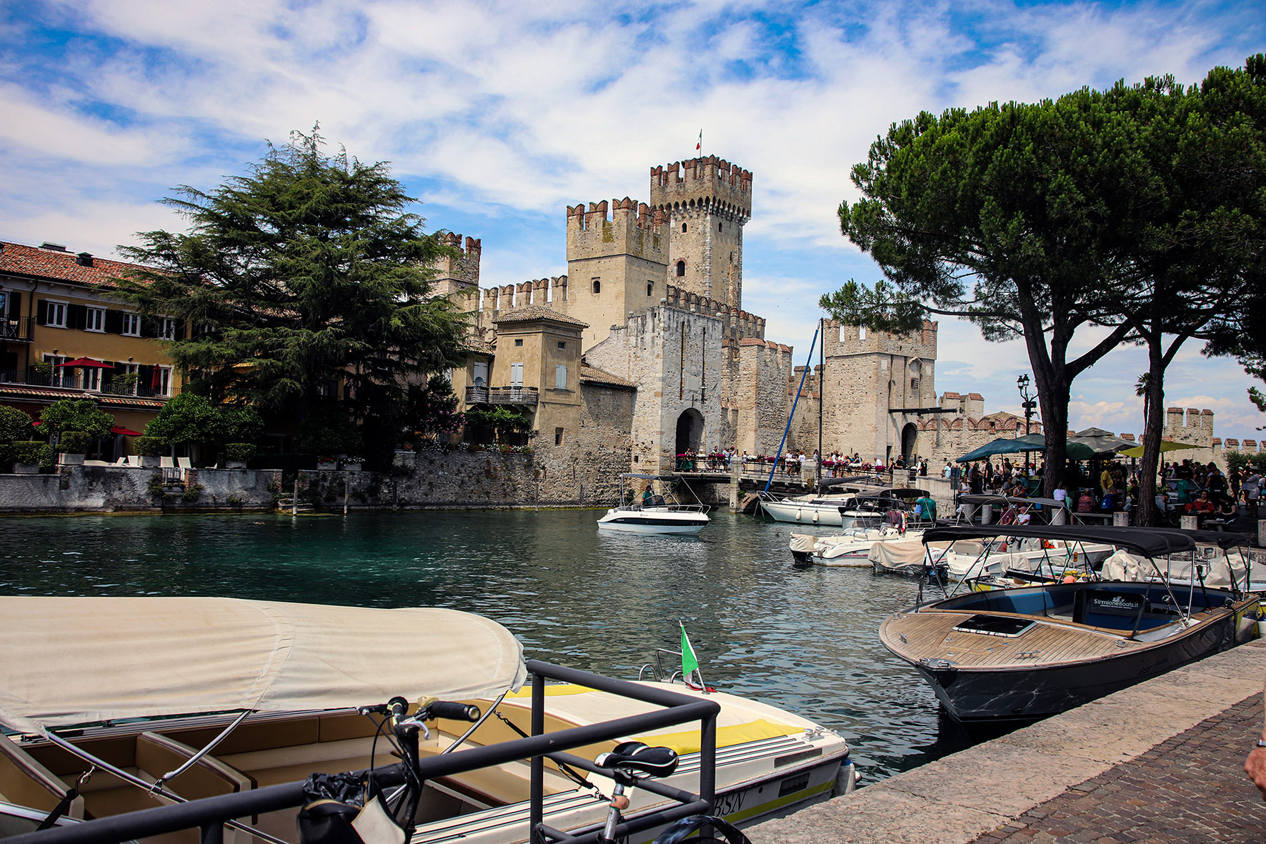 Bei Reisen an den Gardasee gelten Sirmione und Garda, die Stadt, die dem See seinen Namen gab, als unbedingtes Muss. Entsprechend aber ist in den Sommermonaten in beiden Orten mit lästigem Touristenansturm zu rechnen. Vor allem im schon zu Römerzeiten bekannten Sirmione fällt es schwer, in Ruhe und ohne Gedränge die Sehenswürdigkeiten wie das imposante Stadtschloss, die Thermalbäder und die Grotten des Catull zu besichtigen, und auch die Lust auf einen Cappuccino in einem der vielen Bistros und Cafés wird schnell bei dem Massenandrang getrübt. Gut, dass es auf der Leserreise eine weit ruhigere Alternative gab, Sirmione zu sehen: eine Bootsfahrt rund um die so prächtig an der Südspitze des Sees gelegene Halbinsel.