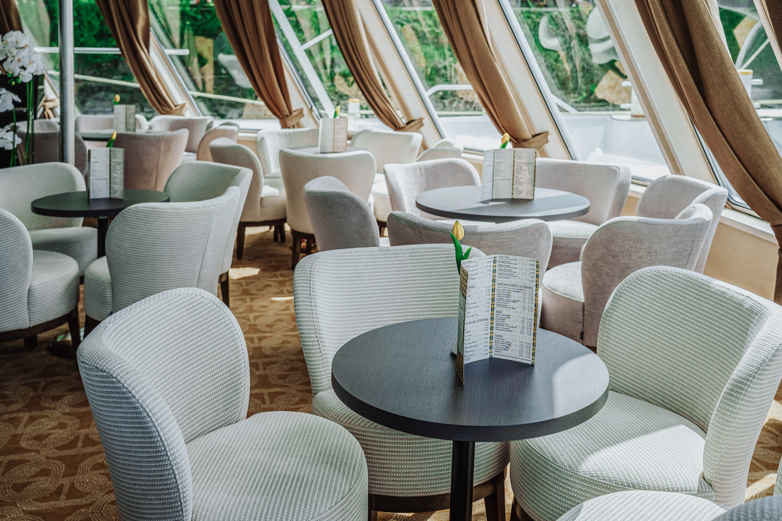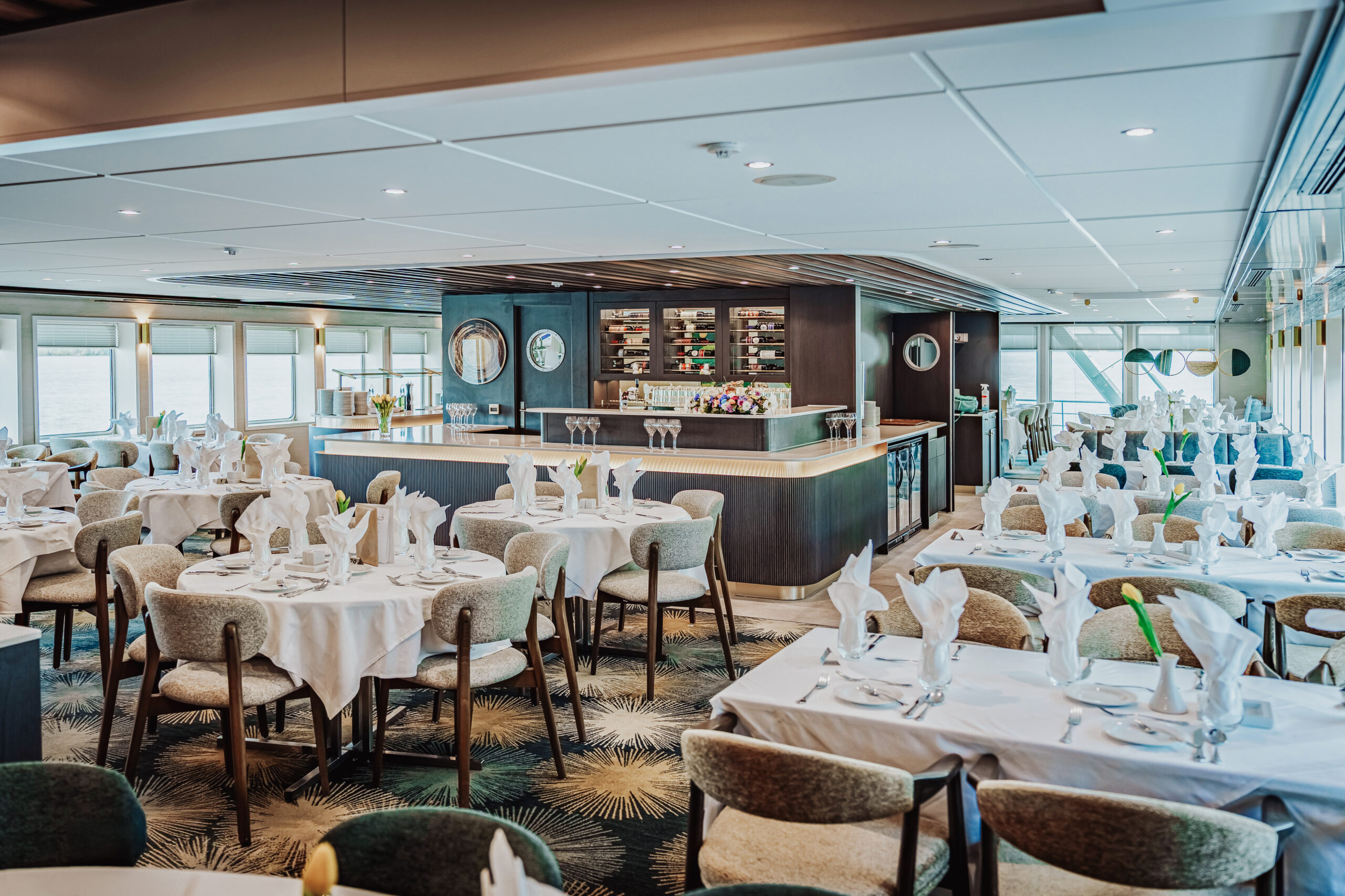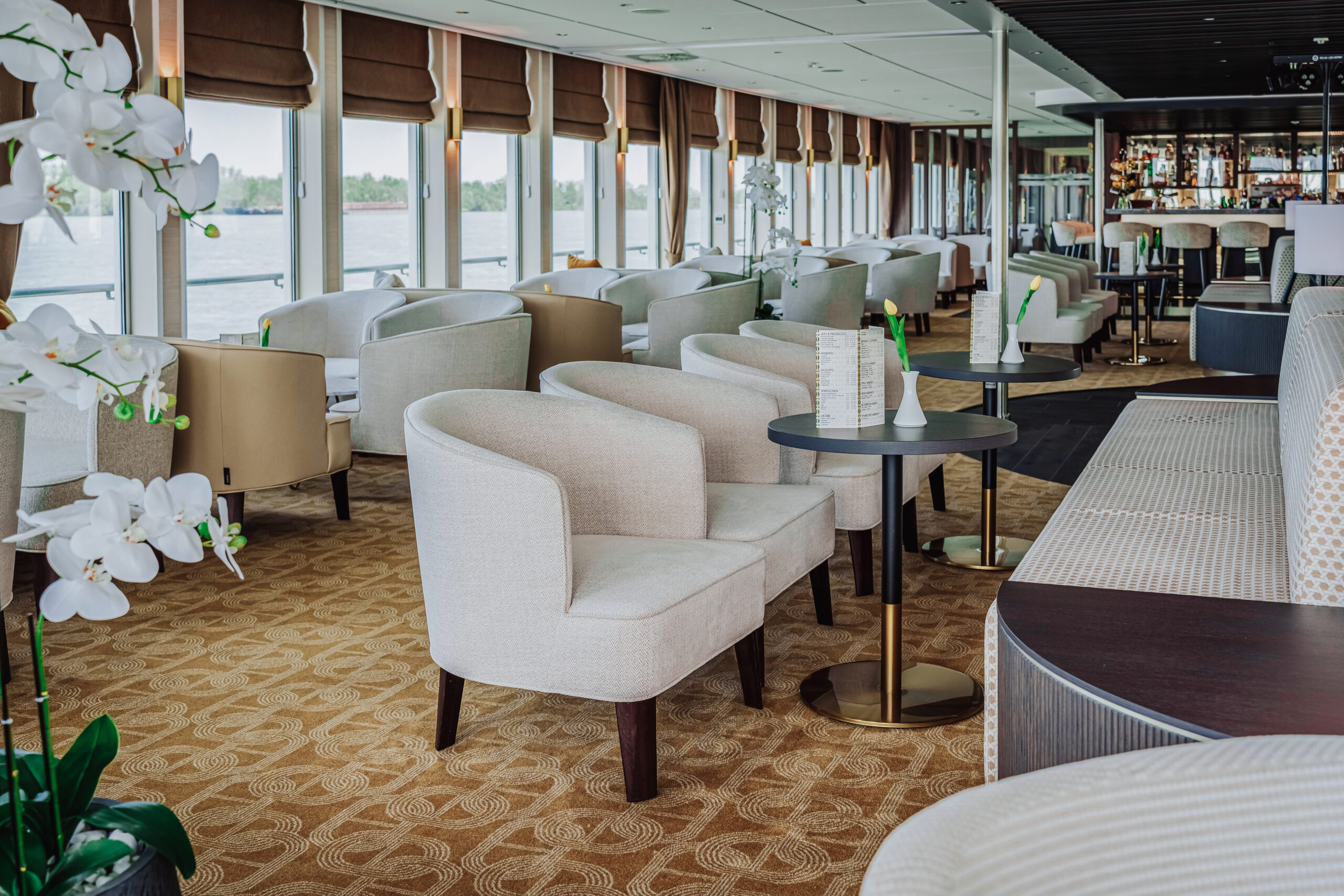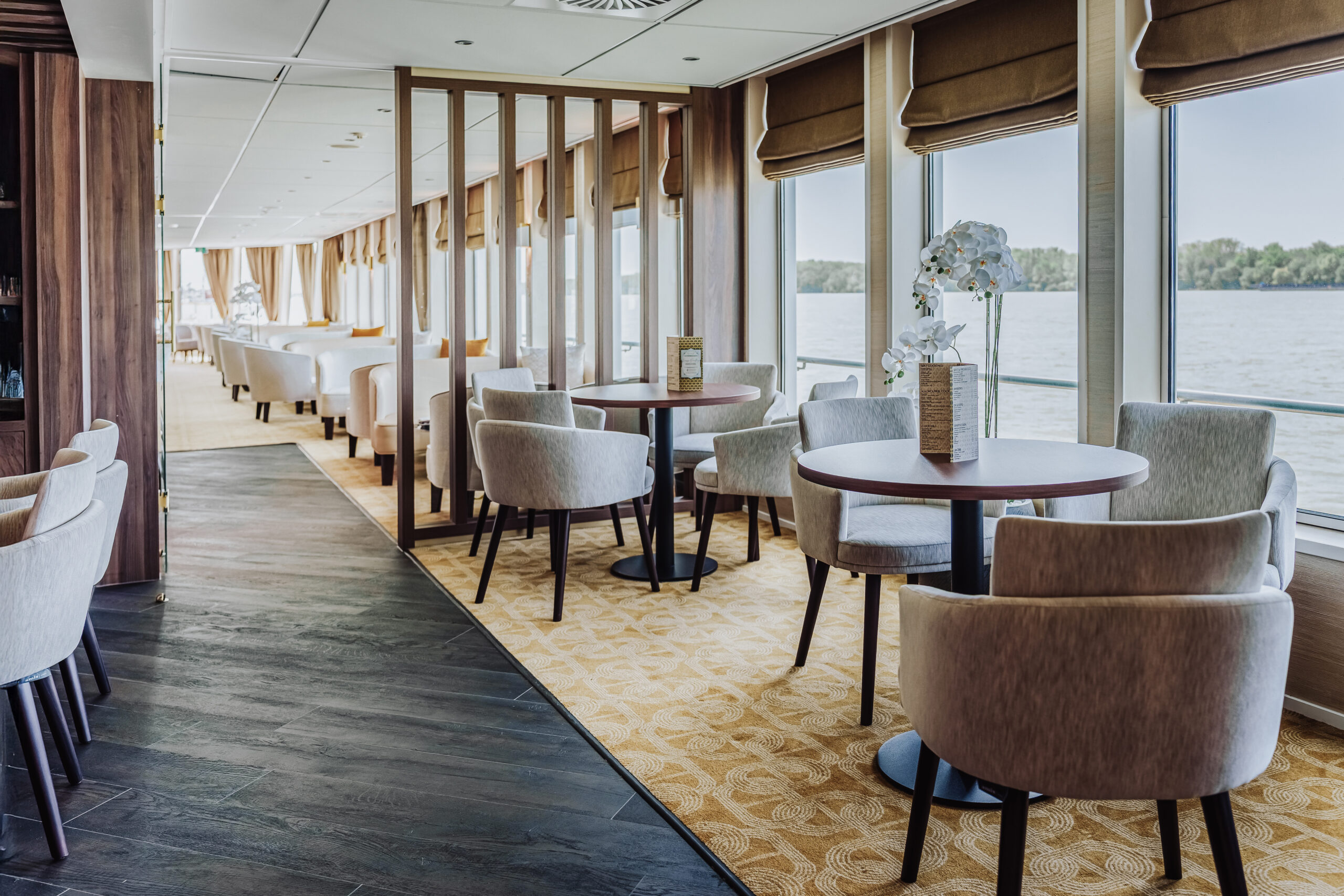 Die MS Adora (Baujahr 2019) bietet 190 Gästen stilvollen First-Class-Komfort mit Panorama-Restaurant, Fitnessraum, Bibliothek und großzügigem Sonnendeck mit Whirlpool.