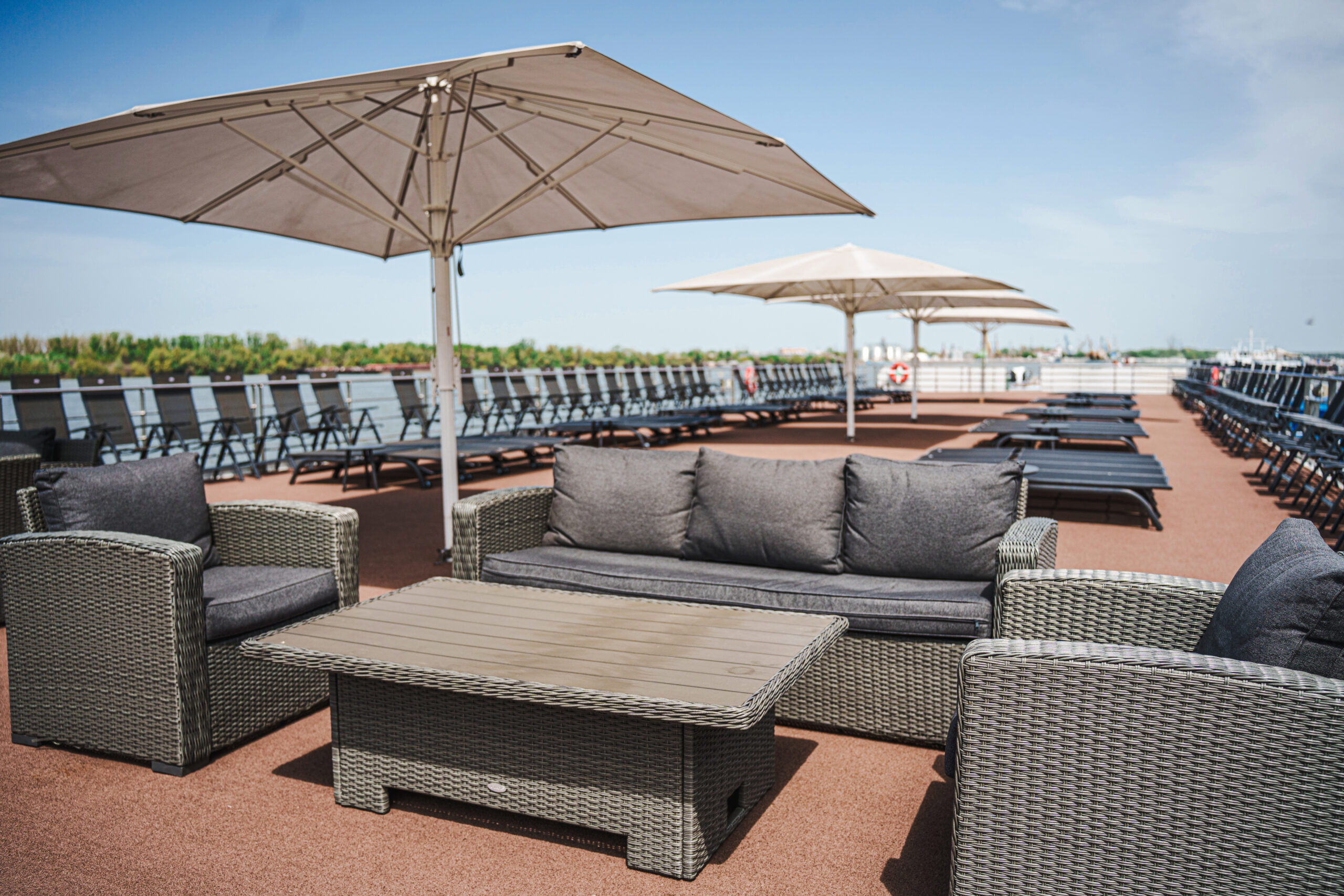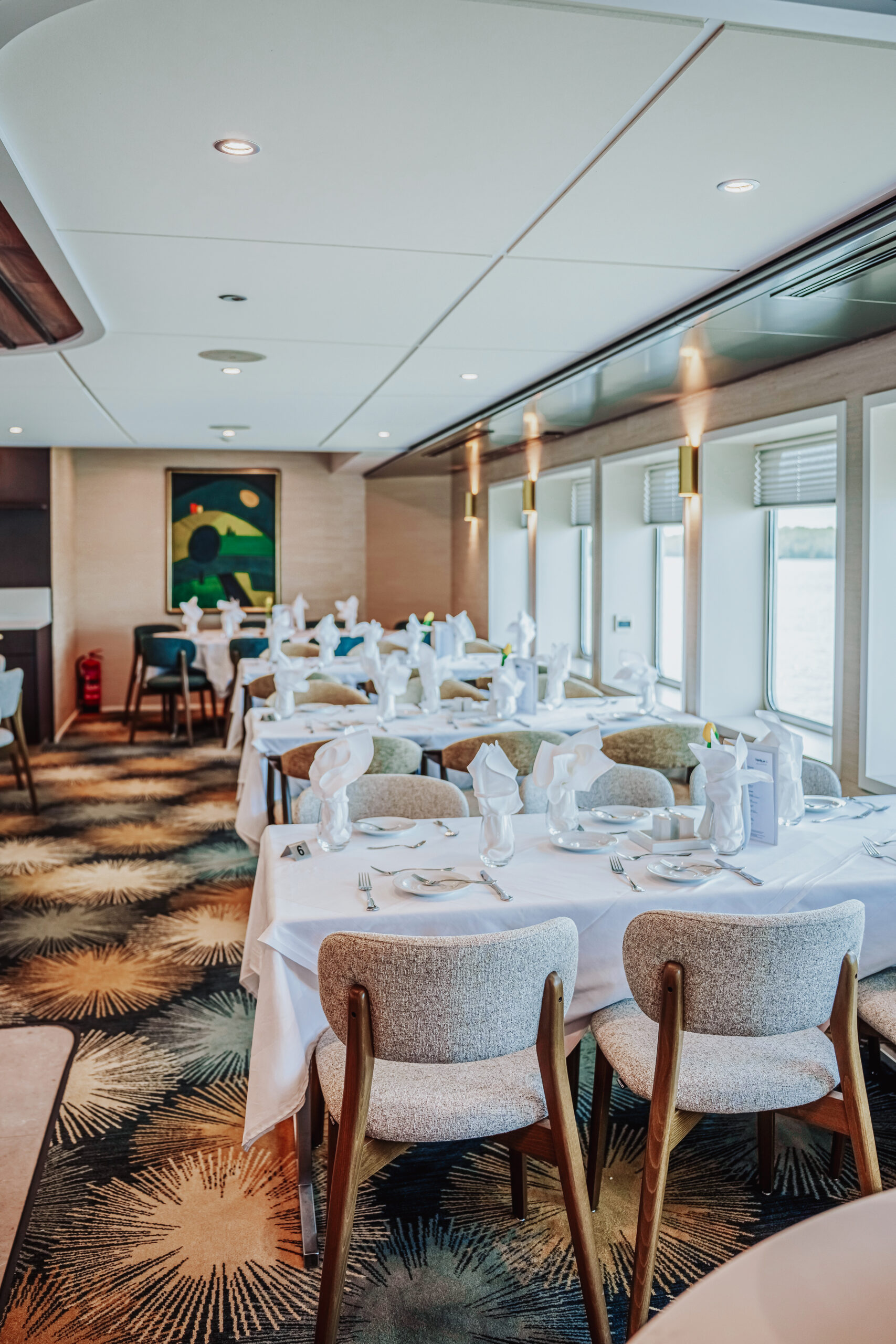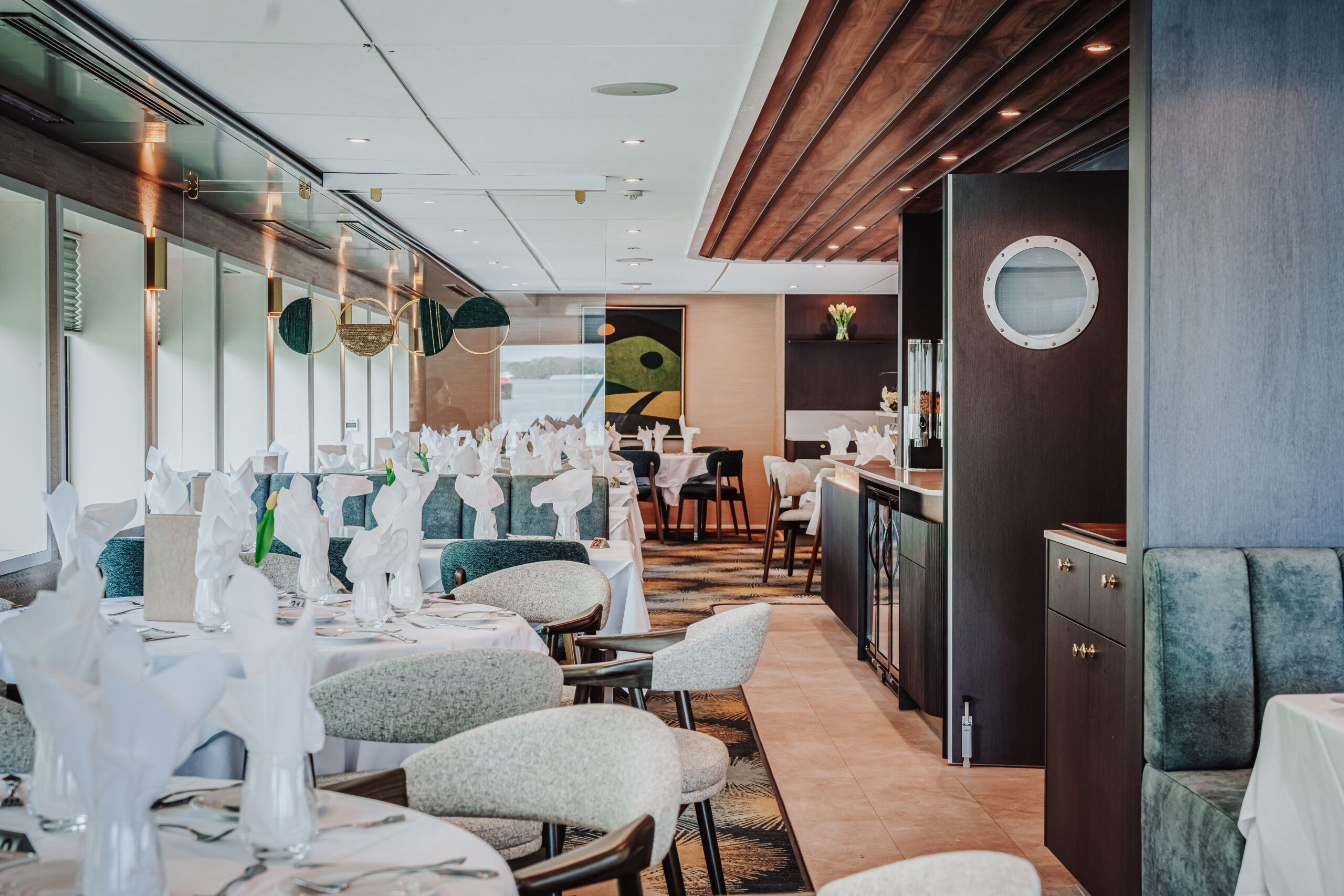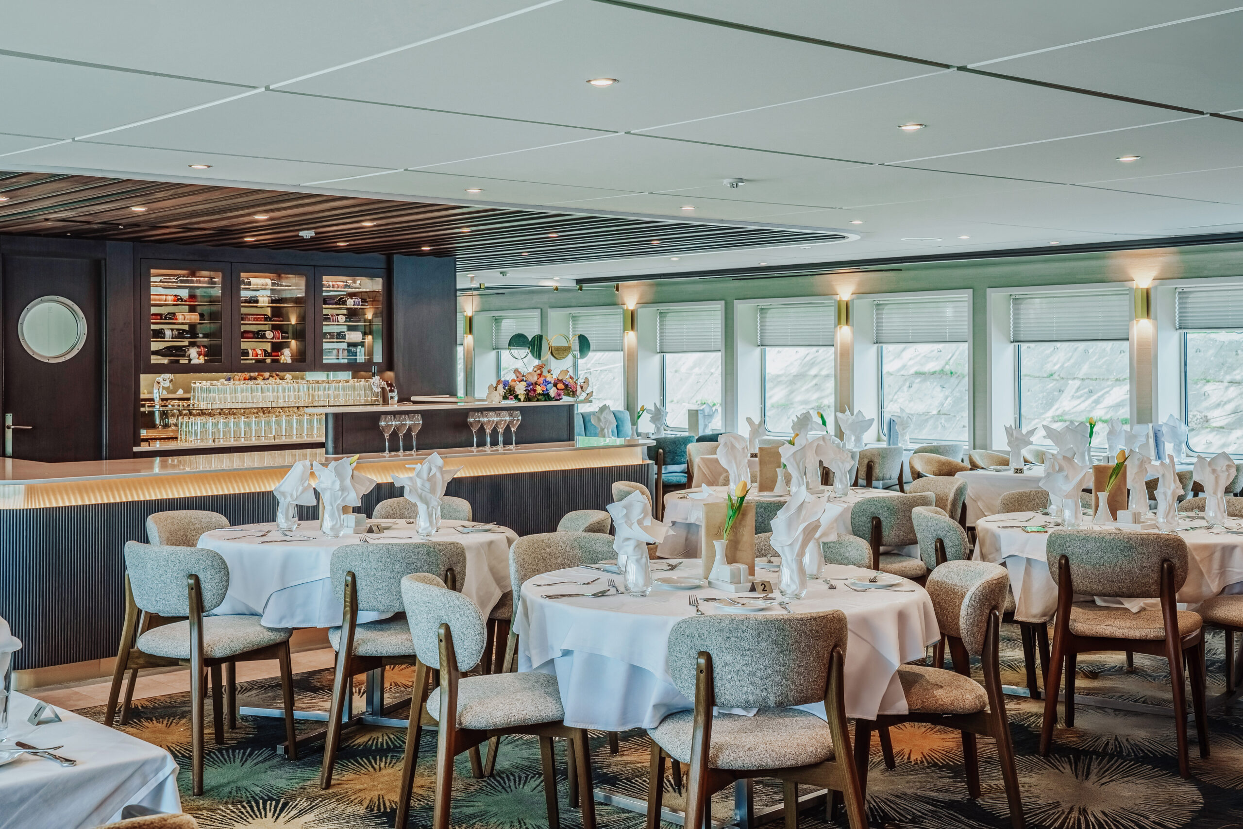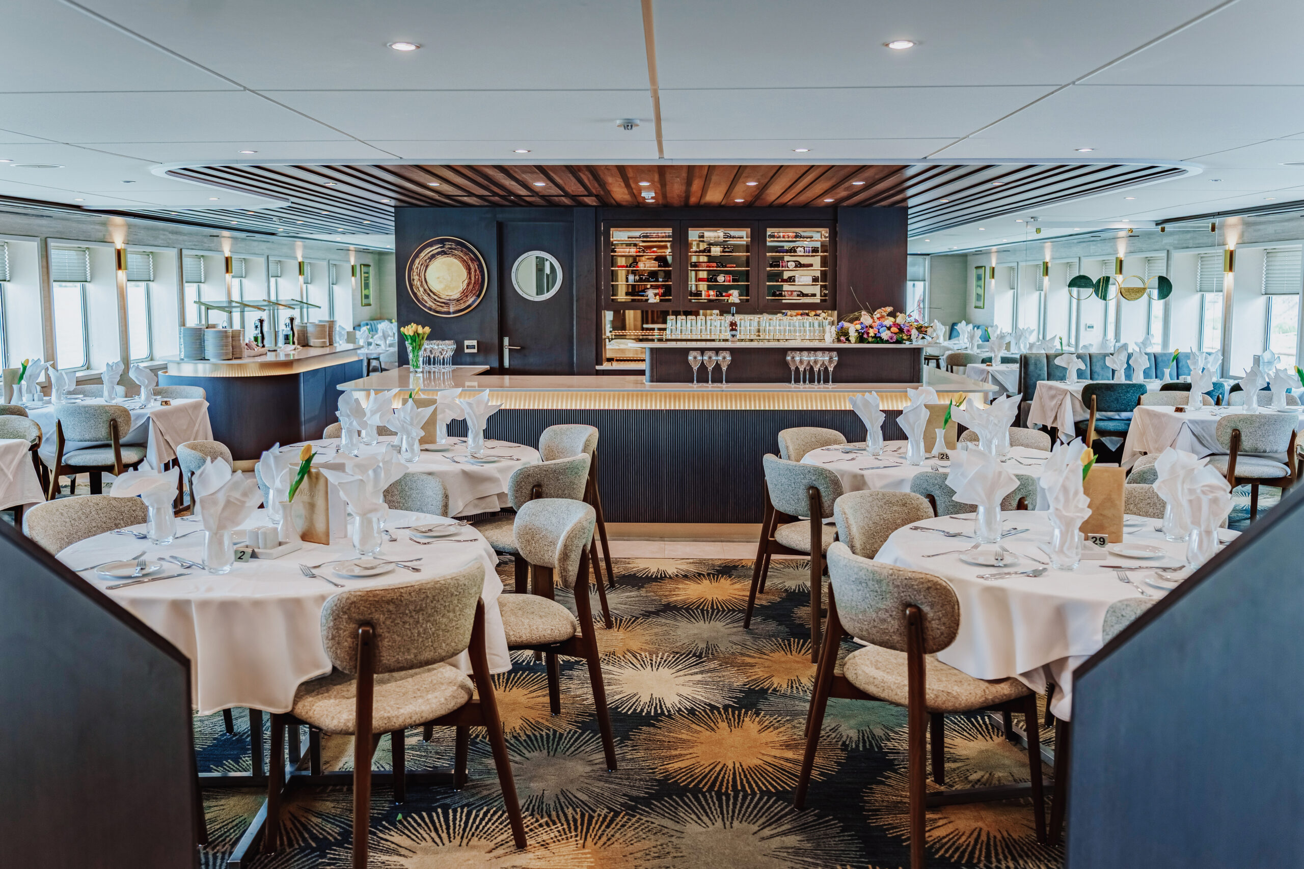 Die MS Adora (Baujahr 2019) bietet 190 Gästen stilvollen First-Class-Komfort mit Panorama-Restaurant, Fitnessraum, Bibliothek und großzügigem Sonnendeck mit Whirlpool.