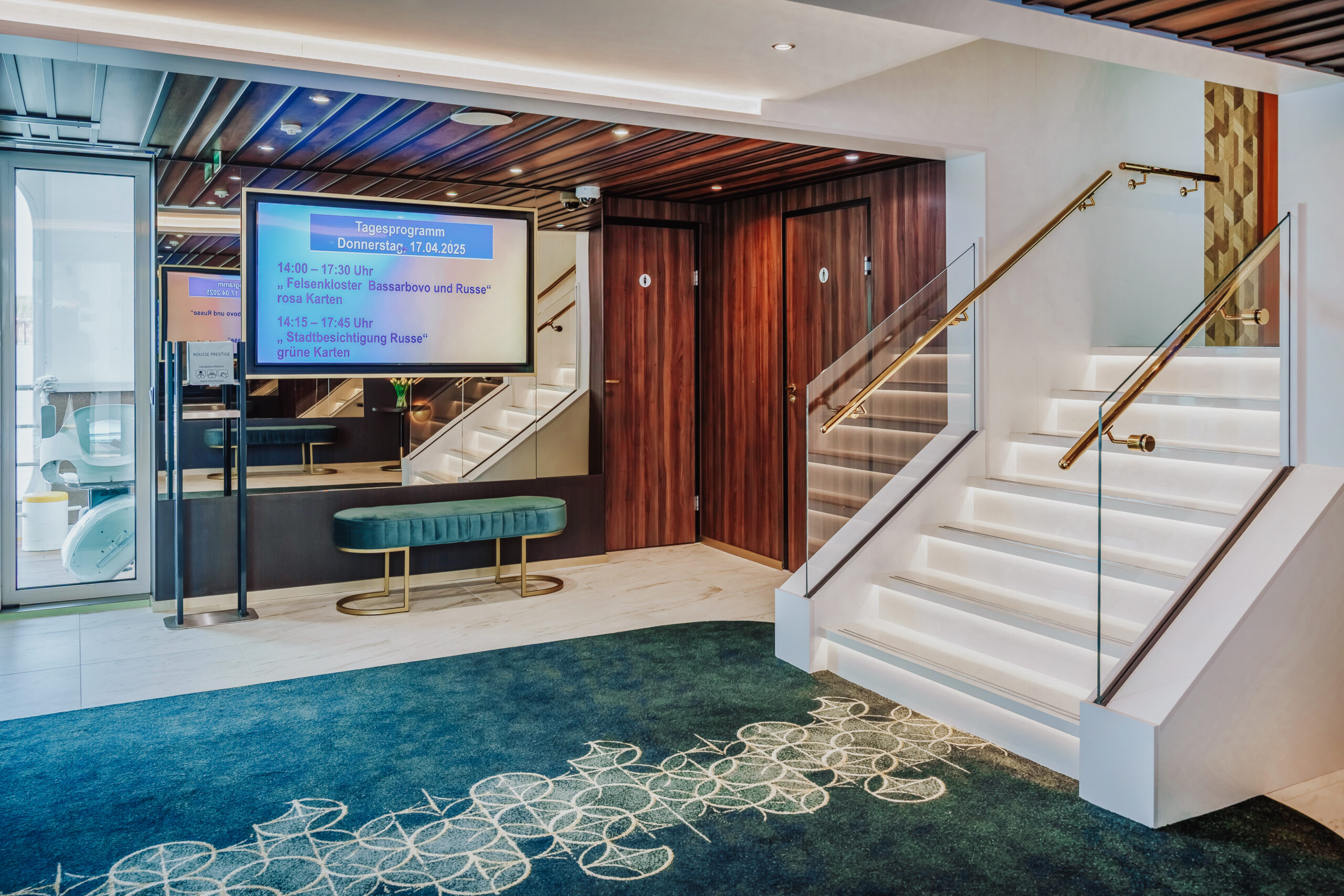 Die MS Rousse Prestige (modernisiert 2024/25) bietet 151 Gästen komfortable Außenkabinen, elegante Panoramaräume, ein großzügiges Sonnendeck mit Whirlpool sowie vielfältige Annehmlichkeiten an Bord.