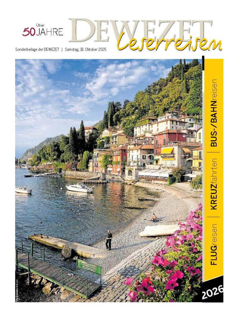 Ob Busreise, Flusskreuzfahrt oder Fernreise per Flugzeug – in der aktuellen Leserreisen-Beilage 2026 finden Sie unser komplettes Angebot an spannenden Urlaubszielen, sorgfältig zusammengestellt mit exklusiven Programmpunkten, persönlichem Service und bewährten Partnern.